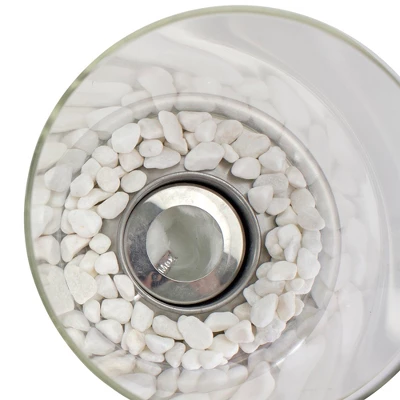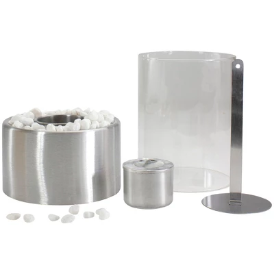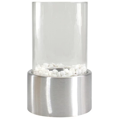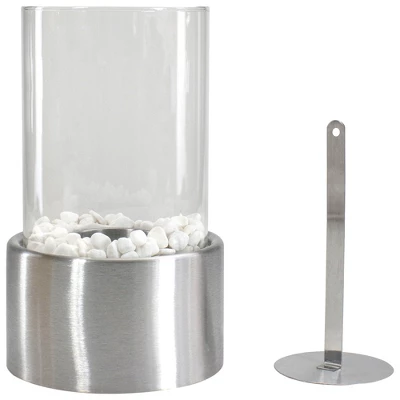 Create a warm relaxing ambiance in your home or outdoor living area with our ventless Bio Ethanol tabletop fireplace. It is fueled by smokeless, odorless, cleaning-burning Bio Ethanol fuel, which means it is safe to use indoors as well as outdoors. Without the need for electricity, a chimney, or framing, you have the ability to move the fireplace from room to room or relocate it to your backyard living space for the summer months. With its sleek modern design and glass panels that allow full flame visibility, this is sure to become a conversation piece. Bio Flame fireplaces are completely self-contained which makes them very quick and easy to install. Product features:Real flame tabletop fireplaceFueled by odorless, smokeless Bio Ethanol fuel (not included)Produces 1,167 BTUs and can comfortably warm a room up to 215 square feetPowder coated steel constructionClear tempered glass provides 360 degree full flame viewEasy to light and extinguish with the included snufferStainless steel double cup burnerIncludes a wool wick that ensures a longer lasting flameWhite stone for added dimension to fireplaceFuel capacity: 150ml Burning time: 60 minutesFor indoor or outdoor useQuick and easy setupDimensions: 10.5″ high x 6.25″ diameter