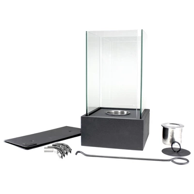 Create a warm relaxing ambiance in your home or outdoor living area with our ventless Bio Ethanol tabletop fireplace. It is fueled by smokeless, odorless, cleaning-burning Bio Ethanol fuel, which means it is safe to use indoors as well as outdoors. Without the need for electricity, a chimney, or framing, you have the ability to move the fireplace from room to room or relocate it to your backyard living space for the summer months. With its sleek modern design and glass panels that allow full flame visibility, this is sure to become a conversation piece. Bio Flame fireplaces are completely self-contained which makes them very quick and easy to install. Product features:Real flame tabletop fireplaceFueled by odorless, smokeless Bio Ethanol fuel (not included)Powder coated steel constructionClear tempered glass provides 360 degree full flame viewEasy to light and extinguish with the included snufferIncludes a wool wick that ensures a longer lasting flameFuel capacity: 175ml Burning time: 60 minutesFor indoor or outdoor useQuick and easy setupDimensions: 15″H x 11.75″L x 11.75″W