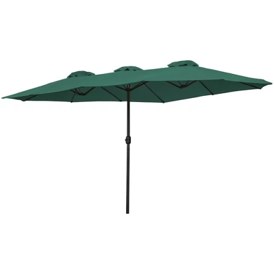 Enjoy tons of fresh air this summer without having to sit in the hot sun. Ideal for covering a larger space but not nearly as expensive or permanent as a pergola or awning. This market umbrella has 3 vents at the top proving maximum airflow. This features a sturdy, powder-coated aluminum frame with steel ribs, built to last a lifetime. The crank opening allows for ease of use. Features:Umbrella shape: rectangularCanopy color: greenFrame and pole color: blackDiameter of open umbrella: 15′ wide x 8.85′ deep Height: 7.75′ Pole diameter: 2″ (48mm) Lift: hand crank 12 ribs Material(s): 180 gram polyester canopy/powder-coated aluminum pole/steel ribs Note: Umbrella only, base is not included