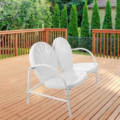 With their fun, vibrant colors and durable design it is no surprise that tulip lawn chairs have remained a popular patio staple for over half a century. Powder-coated finish protects against corrosion and helps keep the color from fading for many years of enjoyment. Coordinate with similarly colored tables and chairs for a matching set or mix and match colors to create a set that is perfectly you.Features:Retro metal tulip 2-seat double chairColor: whiteLong-lasting enamel paint Powder-coated finish 450-pound weight limit Comes with white caps9-piece easy assembly All weather resistant For indoor or outdoor use Overall product dimensions: 32″H x 47″W x 33.5″DSeat height: 17.5″Seat width (single): 19.75″ Seat depth: 19″Seat back (single): 20″ high x 19.5″ wideArmrest height: 24.5″Material(s): steel/plastic