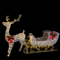 Northlight 48″ LED Lighted Glitter Reindeer With Sleigh Outdoor Christmas Decoration