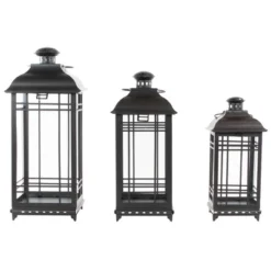 Northlight Set Of 3 Black Traditional Style Candle Lanterns 12.75″