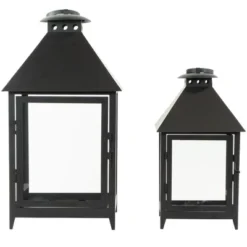 Northlight Set Of 2 Black Modern Style Candle Lanterns 15.75″