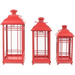 Northlight Set Of 2 Antique Red Mission Style Candle Lanterns 12.25″